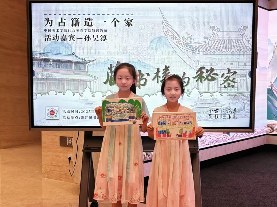 當 20 個油畫框在典籍陳列區排開,當丙烯馬克筆的色彩遇上飛檐斗拱的墨線,一場屬於孩子們的“藏書樓私人設計展”悄然開啓。日前,浙江圖書館“《藏書樓的祕密》:爲古籍造一個家”美育活動在浙江圖書館舉行。20 名小小畫師帶着對傳統建築的好奇,在油畫框上勾勒、上色、創意疊加,最終將各自心中“會守護古籍的家”捧在手心——這些獨一無二的作品,既是對千年藏書智慧的致敬,更是屬於每個孩子的“文明傳承答卷”。