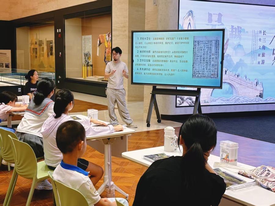 “那古人沒有空調和電腦,怎麼保護書呢?”一個孩子歪着頭問。孫老師笑着指向屏幕上的天一閣:“他們的辦法藏在這些老樓裏呢!”話音剛落,古藏書樓的防火、防蟲、防潮智慧密碼,就在一張張圖片和老師的講解中,慢慢揭開了神祕面紗。