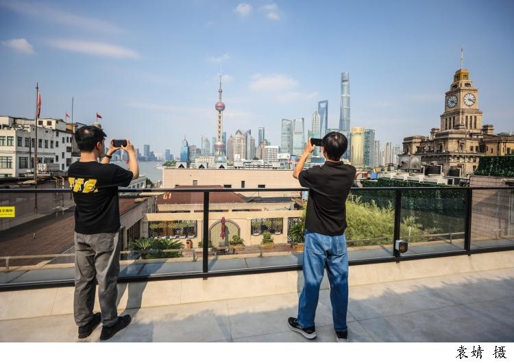 圖爲位於外灘FTC頂樓的露臺是觀賞外灘景觀的極佳點位。創作者們可以在這裏用鏡頭透過浦江兩岸的美景傳播海派聲音,講述中國故事。