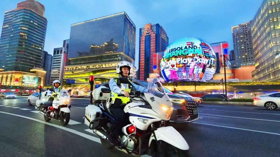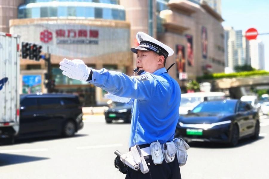 爲守護這方熱鬧與平安,徐匯警方開啓“戰高溫”模式。正午時分,民警們的制服被汗水浸透,豆大的汗珠順着帽檐滴落,卻仍在路口一絲不苟地疏導車流;夜幕降臨,暑氣未散,巡邏警力依然穿梭在熙攘的人羣中,密切關注客流變化,引導市民有序通行。