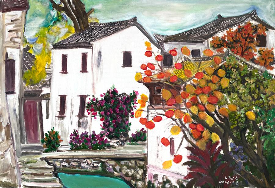 王柳雲出生於湖南新化的鄉村,自幼家境貧寒,初中輟學後輾轉多地打工。“我做過縫紉工,當過服務員,連磚窯都去過。”她對記者訴說着曾經的工作經歷,“早年,有人說我窮得飯也喫不飽,還能有什麼出路?無論我走到哪裏,苦難的門總是開着,根本不敢想畫畫這件事。”2017年命運的齒輪開始轉動,自從女兒大學畢業開始工作,家裏經濟狀況稍有好轉,王柳雲決定追隨內心的呼喚,遠赴福建雙溪開始學畫,畫畫能養活自己嗎?畫場創始人林老師鼓勵她有天賦,堅持畫,出作品。