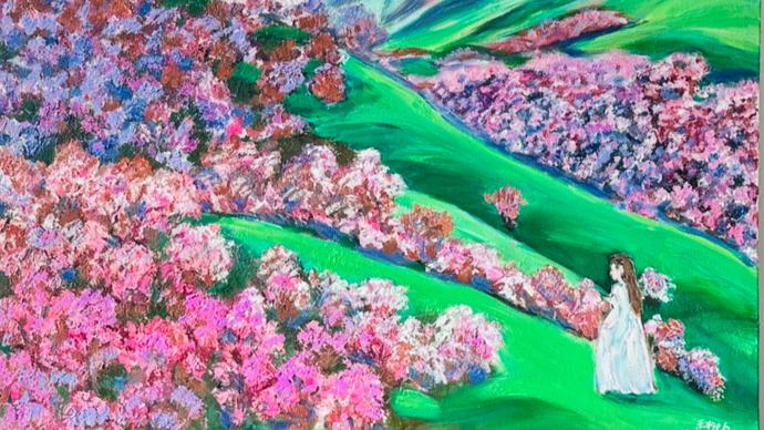 拿起畫筆的王柳雲看到了生活中的藝術之光,“自己就像是第二次來到了人間”。在學畫的日子,她流連於鄉村與山野、古鎮的老街、民居與寺廟,她親近山林樹木花草,細看女兒買給她的世界名畫冊,她用畫筆描摹着自己對生活的理解與熱愛。畫出了《紫色的原野》《丹霞石上的杜鵑》《古石板路》等作品。她的畫作中,有鄉村的寧靜,有青綠的山水,也有城市的燈火,有勞動者的身影,也有大海的呼吸。