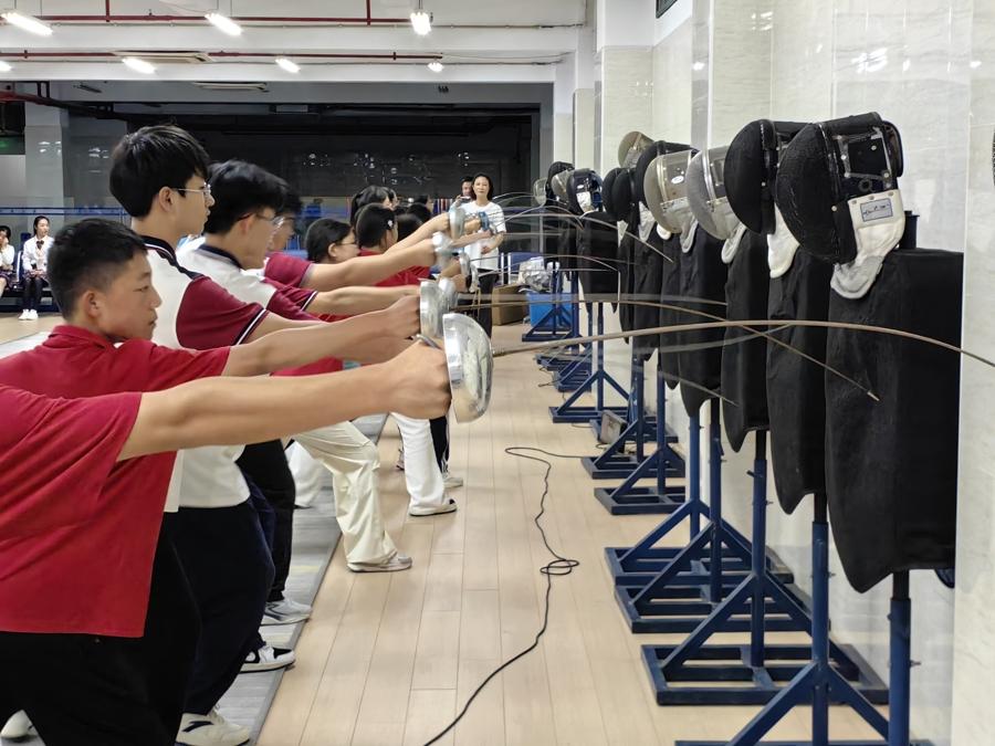 在擁有164年曆史的上海市第八中學,黃浦區“師說”宣講團戚黎豪老師帶領重慶市萬州新田中學和山西省高平市石末初級中學的學生在校史館中探尋往昔。隨後,大家在化學實驗室親手嘗試“藍曬實驗”;在體育活動中感受“擊劍”的魅力並接受“科學健身”的專業指導;更通過虛擬直升機、遊輪駕駛以及VR互動,馳騁於科技創新的前沿。