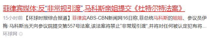 菲律賓媒體:反“非常規引渡”,馬科斯親姐提交《杜特爾特法案》