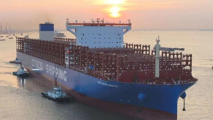 “N1072”輪爲16000TEU集裝箱船,是該系列船型第2艘新造船。船型總長366米、型寬51米,水面以上最大高度52.20米,配備國產WinGD全球首臺甲醇雙燃料主機,能夠以“純甲醇模式”完成跨太平洋的單程航行。
