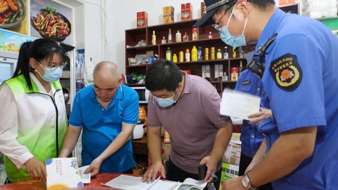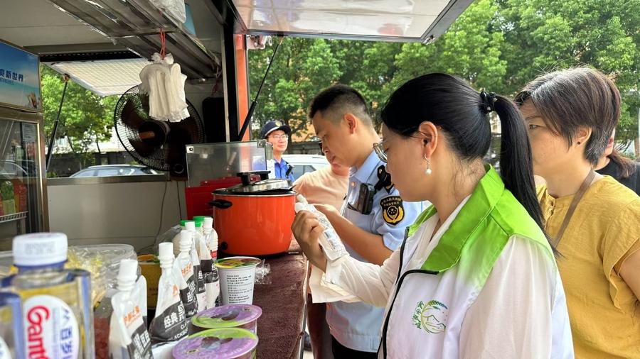 這場夜間檢查,是張堰鎮“夏陽固鏈”專項行動的縮影。從傍晚到深夜,檢查組穿梭在夜市的各個攤位間,燒烤、火鍋、小龍蝦……這些夏日裏最受歡迎的美食,都是監管的重點。他們不僅查食材來源、加工衛生、從業人員健康證,還盯着消防安全設備是否完好、垃圾分類是否到位、有沒有佔道經營。遇到健康證過期的攤主,當場督促去補辦;發現乾溼垃圾混放的,手把手教着分類;甚至有一家燒烤店因食材與菜單名稱不符,被當場叫停售賣,市場監管部門已立案調查。