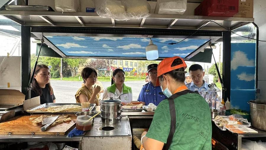 而這樣的守護,從當天清晨就已開始。天剛矇矇亮,工業園區的早餐車旁就迎來了“體檢隊”。“大姐,您這裏脊肉得蓋好,防蠅防塵措施不能少。” 城建中心的工作人員指着餐車角落,“餐廚垃圾要單獨放,和其他垃圾分開放。”攤主們一邊忙着蒸包子、煎蛋餅,一邊接過發放的食品安全手冊,晨光裏,“元氣早餐” 的安全關,就在這一問一答中被牢牢把住。
