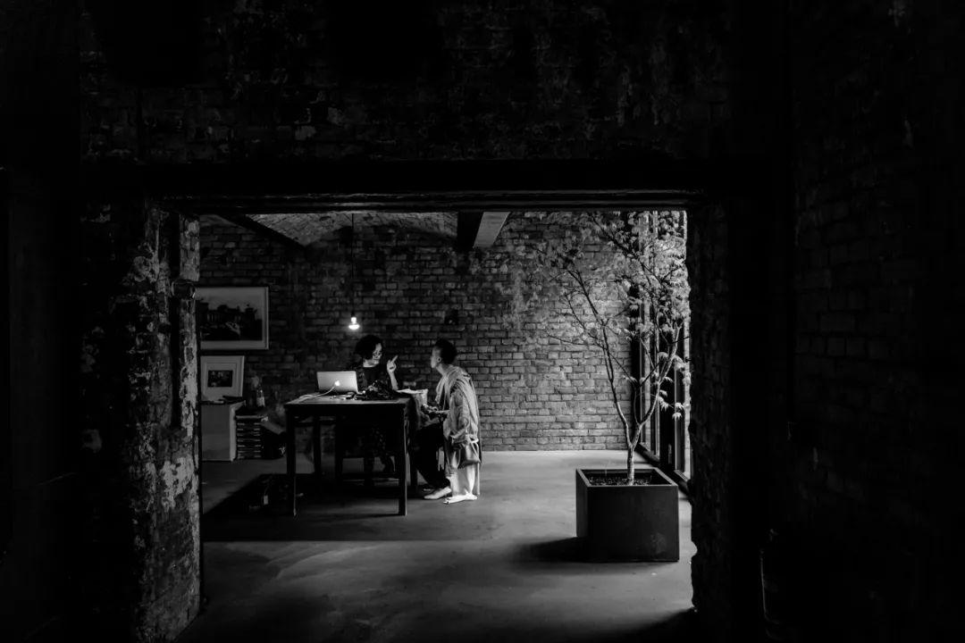2020年春,柏林,江青、兆欣坐着討論角色(亞男攝)