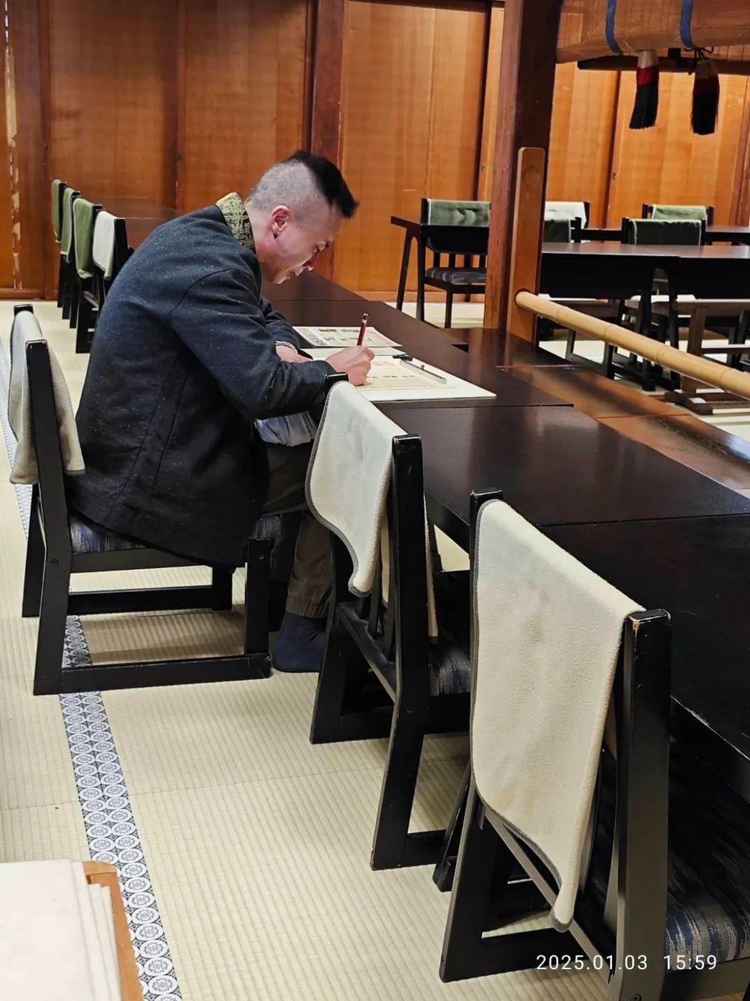 在日本大覺寺專心一致抄心經。(兆欣送給作者)