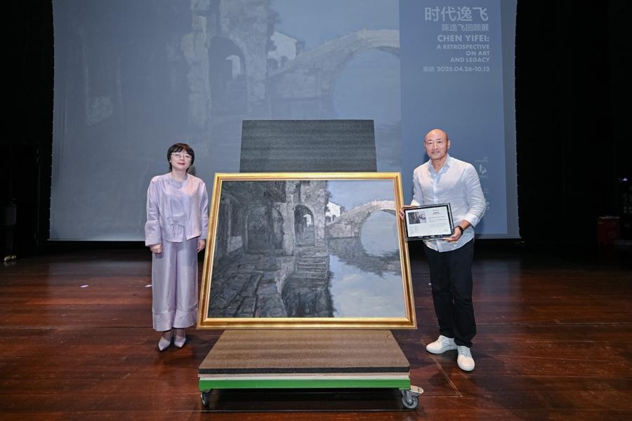 7月17日上午,浦東美術館迎來“時代逸飛:陳逸飛回顧展”作品捐贈。海派藝術名家陳逸飛的雕塑代表作《東方少女》與水鄉系列油畫《拱門與橋》分別由陳逸飛家族及陳逸飛文化發展專項基金正式贈予浦東美術館,成爲美術館永久館藏。這不僅是對浦東美術館專業地位的高度肯定,更是陳逸飛“大美術,大視覺”精神薪火傳承的重要節點。