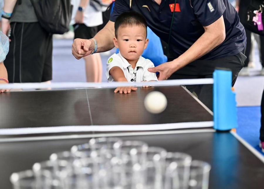 7月18日上午,巴黎奧運會乒乓球男單冠軍樊振東來到楊浦區復興島船臺Park,“做客”上海市“國球三進”系列爭霸賽暨“韻動楊浦·秀出來”乒乓球選拔賽,引燃了現場球迷的熱情。中國乒乓球學院院長、上海市社區體育協會會長施之皓,世界冠軍張德英、曹燕華、曹臻等共同參加活動,爲比賽開球。