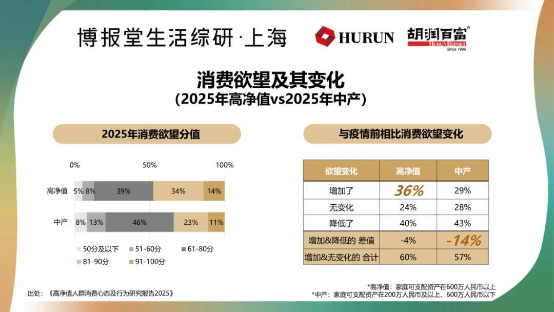 如果我們把消費慾望量化成分數,那麼高淨值人羣的消費慾望則高79.7分,而中產階層的分數爲76分。此外,高淨值人羣相比疫情之前的消費慾望提升了36%,而中產則只提升了29%。