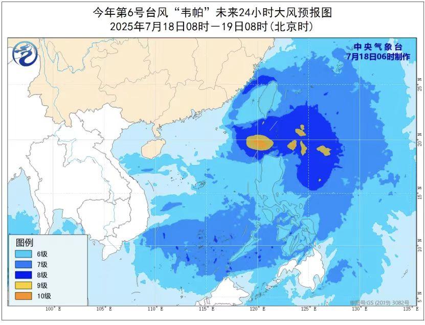 中央氣象臺6時發佈颱風藍色預警,菲律賓以東洋麪的熱帶低壓今天凌晨加強爲今年第6號颱風“韋帕”,預計7月18日至19日影響我國。