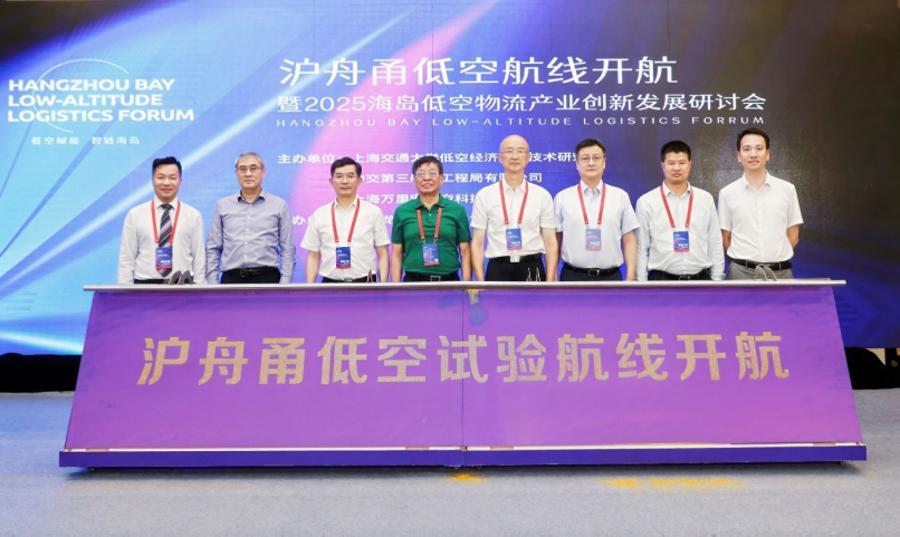 7月18日下午,滬舟甬低空航線開航暨2025海島低空物流產業創新發展研討會在浙江省舟山市岱山縣舉行,上海萬里安航空科技公司落地岱山揭牌、中交三航局與萬里安航空科技簽約。
