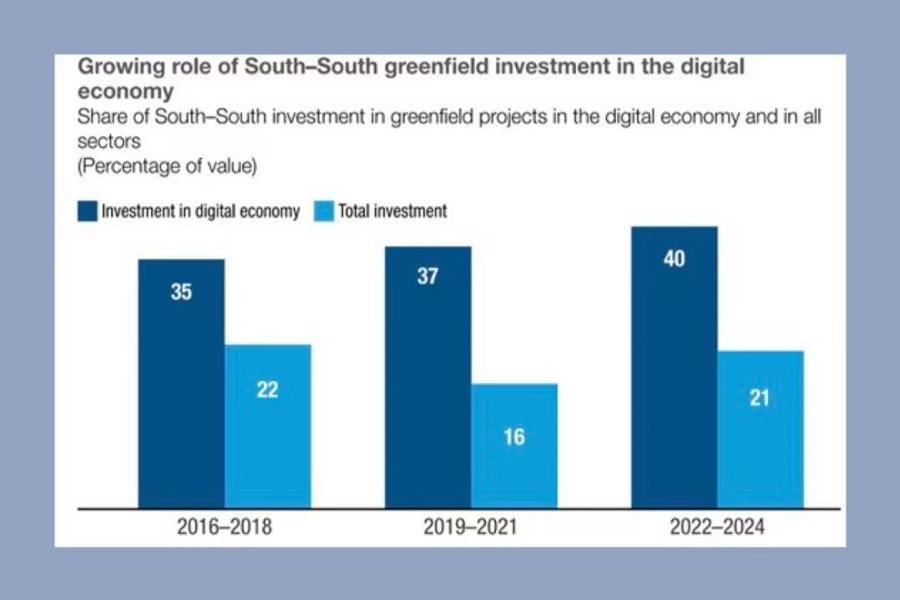 從Statistica網站看到,相比於全球其他投資,南南投資中的數字經濟佔比更高