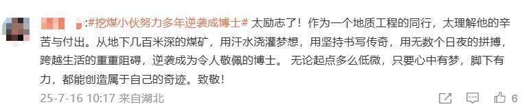 據文中作者自述,他來自小山村,12歲開始跟着老爸下小煤窯挖煤,經過兩次高考,19歲高考500多分考上了專科,後來專升本,本科學習地質工程,考了研學習採礦工程,還讀了博。