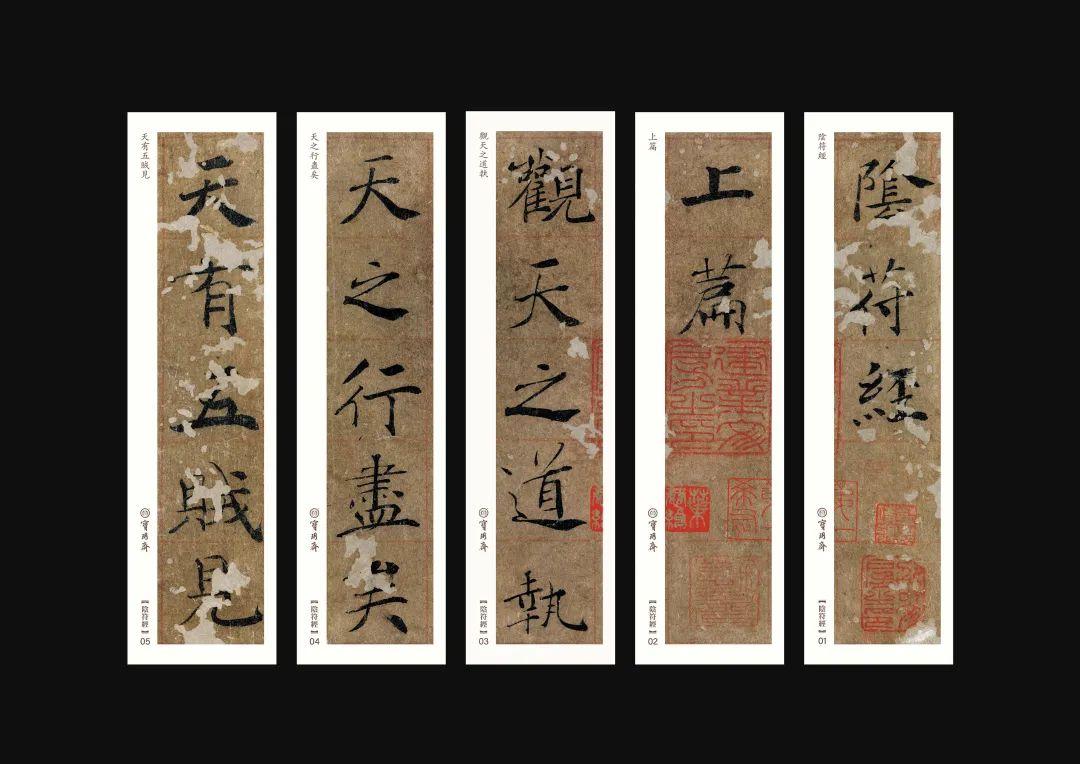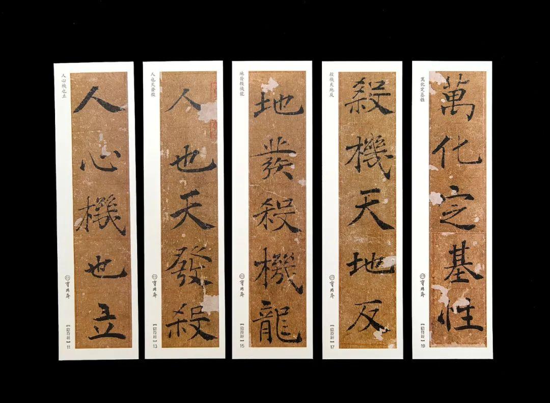 《大字陰符經》傳爲褚遂良書。褚遂良曾奉旨書寫《陰符經》,凡一百九十卷之多,爲小楷或草書。此件《陰符經》爲大楷。關於此件的真僞說法不一,但前人評價極高,沈尹默曾謂:“其字體筆勢亦與《伊闕》爲近,《伊闕》既經鐫刻模拓,筆畫遂益峻整,少飛翔之致,雜有刀痕故爾,褚公楷書真跡傳世者,唯此與《倪寬贊》二種。”此件書寫將草書筆意運用其中,發揮到極致,併兼有篆隸,褚書的特色自此都表現出來,以書法的水平評判,是學習楷書的一個重要範本。