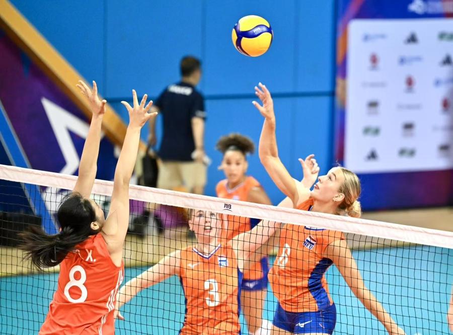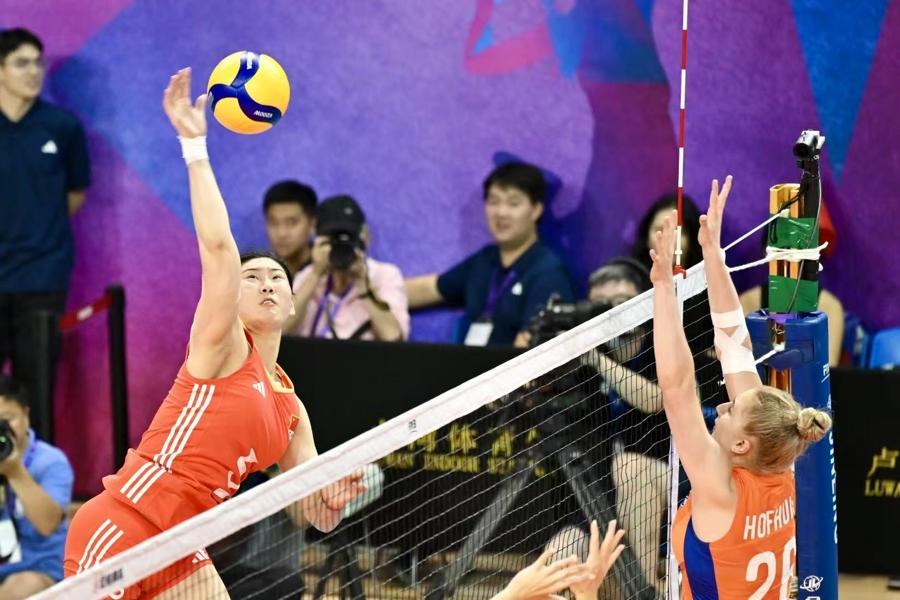 第二局,荷蘭隊力圖通過發球衝擊中國隊一傳,中國隊積極組織防守反擊,開局以10比7領先。中局階段,中國隊發球連續得分,荷蘭隊難以組織有效進攻,中國隊擴大比分優勢至18比10。接下來的比賽荷蘭隊串聯出現波動,中國隊加強三、四號位進攻,以25比16贏下第二局。