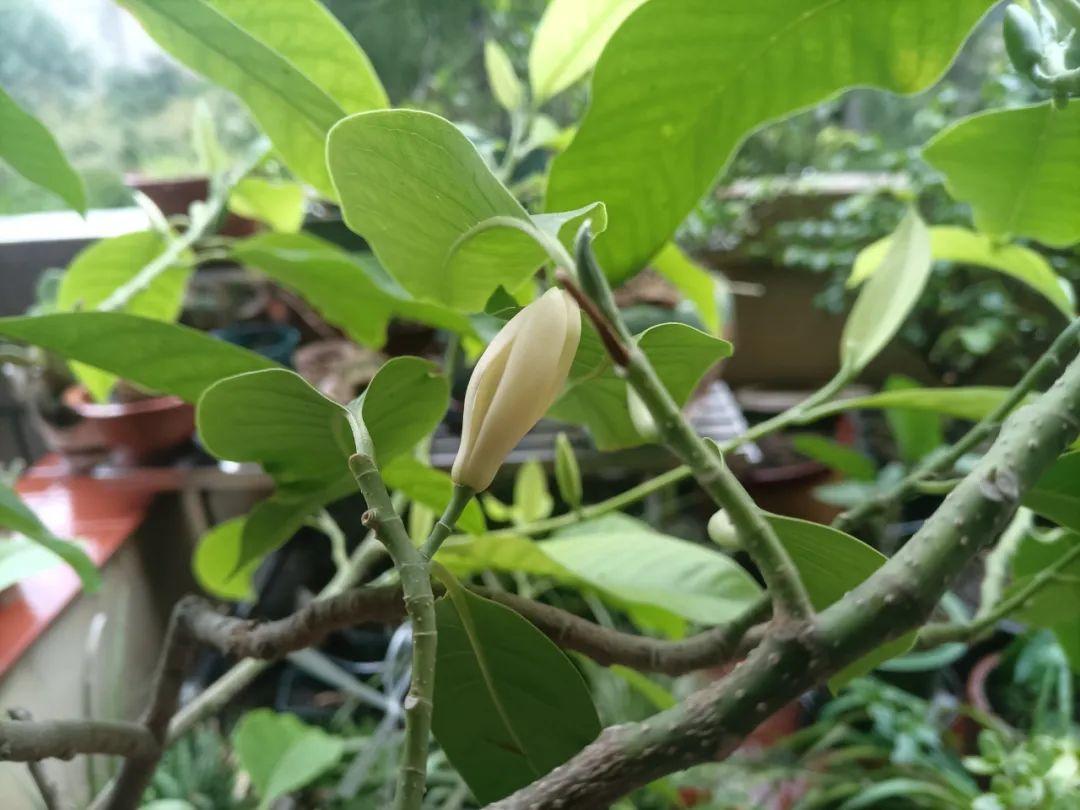 盛夏,一年裏最爲蓬勃的日子。草長花開,生生不息。菜蔬咫尺處,一株白玉蘭,自小滿初開,到了夏至,枝頭尚有最後一朵白(下圖)。這個夏天,它一共盛開三十二朵花——周遭空氣都是蜜,香氣淺淡,輝映着平凡的茄子辣椒安靜生長。小園中,黃月季開了三茬。仙人球的花,酷似曇花。文竹愈發綠些,無數細小針葉盤成一爿綠蛛網,夏風簌簌而過。魚尾葵披了一層青綠的翠。