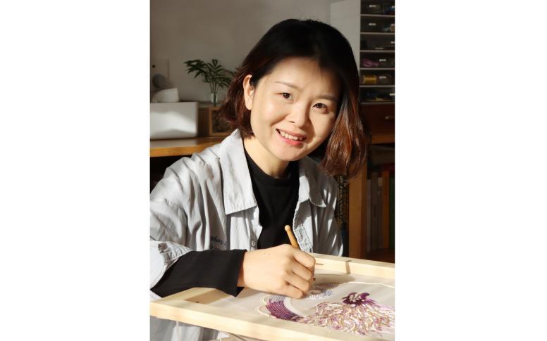 85後藝術家祝心聆,擁有城市規劃與設計專業碩士學位。2014年畢業後,她選擇了一條非傳統的道路——紮根上海,投身刺繡藝術。經過十年的探索與沉澱,她確立了獨特的“國風刺繡”風格。深受海派文化薰陶的她,巧妙融合西方刺繡技法與中式美學意境,創作出兼具現代設計感與文化傳承價值的作品,成爲當代刺繡創新領域的代表人物。