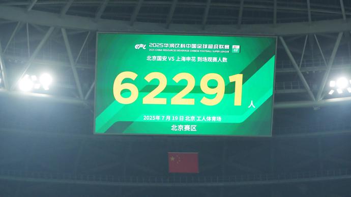 面對申花,北京工人體育場湧入62291人,創造中超第二高上座紀錄