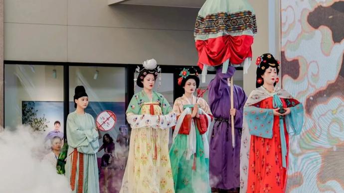 作爲漢文化發祥地,徐州非遺在活動中大放異彩:沛縣少林武術學校《古沛武風》再現漢高祖故里雄風,剛猛招式展現省級非遺魅力;徐州幼兒師專將國家級非遺"徐州琴書"與今夏火爆的"蘇超"聯賽融合,原創曲藝說唱《歡樂蘇超》贏得滿堂喝彩;徐州五竹文化傳媒以漢服復原秀《觀唐禮佛圖》演繹傳統禮儀,衣袂翩躚間彰顯"楚韻漢風"底蘊;江蘇省梆子劇院國家級非遺項目《抬花轎》唱腔激越高亢,省柳琴劇院《淮海老腔說江蘇美食》用鄉音鄉韻串聯地鍋雞、伏羊湯等舌尖記憶;沛縣曹家班嗩吶《豐收的喜悅》壓軸登場,歡快旋律傳遞鄉村振興的蓬勃氣象。