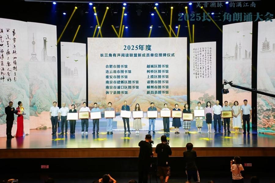 據悉,本屆大會延續長三角有聲閱讀聯盟的品牌傳統,爲新加入的南京市浦口區圖書館、南京市建鄴區圖書館、連雲港市圖書館、淮安市圖書館 、合肥市圖書館、休寧縣圖書館及紹興地區公共圖書館共計12家成員單位授牌,並頒發2025年“天籟浙江·城市記憶”主題朗誦大賽獎項。大會通過線上平臺全程直播,吸引超300萬人次在線觀看,網絡媒體發佈的“吳音挑戰賽”話題播放量破千萬。