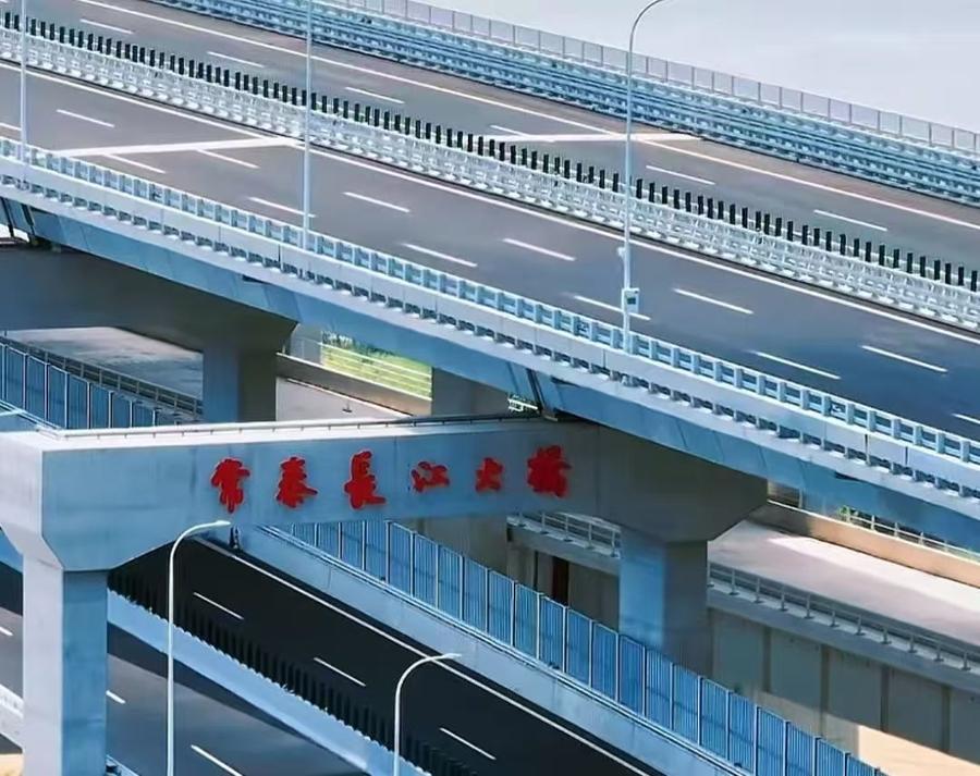 常泰長江大橋採用上下雙層佈置,其中上層爲六車道高速公路,下層上下游側分別設置爲雙向城際鐵路和四車道普通公路。