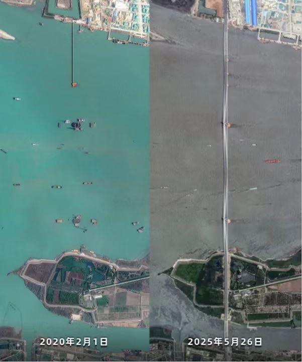 從2020年到2025年,吉林一號衛星影像記錄下了常泰長江大橋從無到有的壯麗歷程。