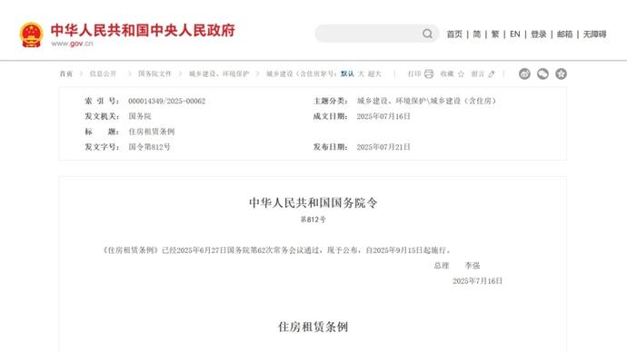 日前,《住房租賃條例》公佈,自2025年9月15日起施行。