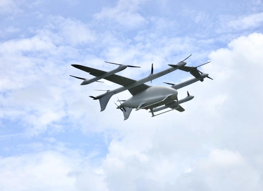V2000CG凱瑞鷗由峯飛航空自主研發,純電動力,無人駕駛,最大起飛重量2噸,最大商載400公斤,巡航速度最高200公里每小時,適用航程200公里。其結合垂直起降和固定翼巡航功能,便於靈活部署,主要用於低空物流、緊急物資運輸和應急救援。