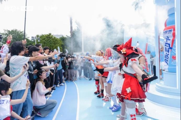 《原神》與飲料品牌脈動的聯動則響應“國家健康年”號召,巧妙將遊戲元素融入運動場景中。於廣州大學城開展的快閃活動吸引衆多玩家參與,現場有裝扮成《原神》角色的舞者帶來運動舞蹈表演,這種結合二次元元素且充滿活力的舞蹈,受到年輕羣體的歡迎。