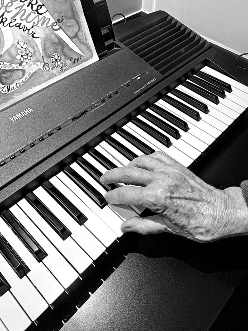 然而,還是會有奇蹟發生。有一天,我們在公寓裏一起走了幾步,在電鋼琴前停了下來。鋼琴上,是與路德維克相關的幾個杯墊。一張黑白照片。1912年11月19日音樂會的節目單:巴赫、肖邦、斯美塔那(捷克作曲家)、諾瓦克(捷克作曲家)和李斯特。一張萊奧什·雅納切克的照片,周圍是他的學生,其中就有昆德拉的父親和帕維爾·哈斯。在鍵盤上方是一本樂譜,封面上有一隻小鳥:雅納切克的《摩拉維亞民歌鋼琴曲》。我們在鋼琴前坐了下來,突然,出乎意料地,米蘭伸出了右手。他幾乎出於本能地將手放在琴鍵之上。法索升拉索。沒有任何猶豫。手未見絲毫顫抖。鋼琴家的手依然保持着完美的弧度。