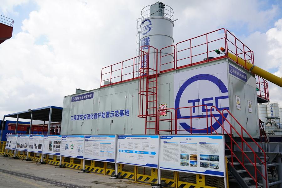 該基地通過將泥漿轉化爲低碳新材料——流態固化土,成功實現了廢棄泥漿的資源化利用,做到了泥漿“從哪裏來,回哪裏去”。