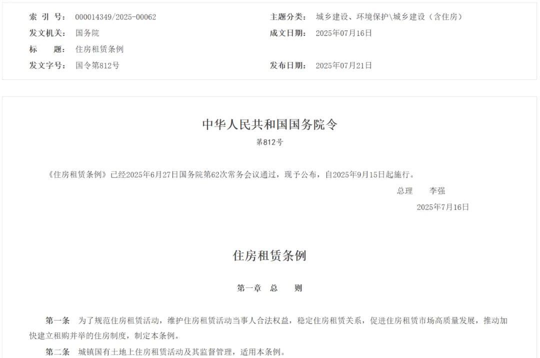這部引發行業熱議的國家級條例,是指國務院近日正式公佈、將於今年9月15日起施行的《住房租賃條例》,它將對房東、租客、中介機構、住房租賃企業、地方政府等租賃市場的多方都提出了明確要求。