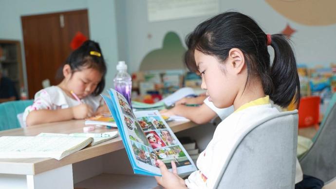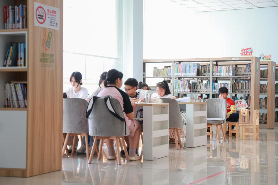 據金山衛鎮圖書館工作人員羅酈娜介紹,暑假來臨,金山衛鎮圖書館也迎來了借閱高峯。不僅兒童區座無虛席,就連成人閱覽區座位也很緊俏,“尤其週末假日,很多小朋友、讀者在這邊會待上一整天。”