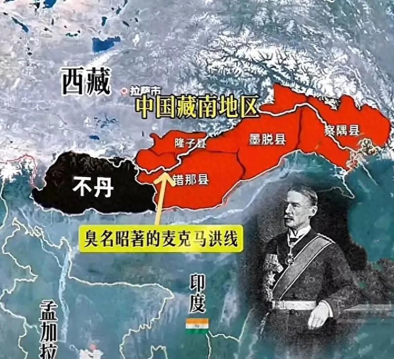 1914年,英國殖民官員麥克馬洪用鉛筆在地圖上隨意劃線,將中國藏南9萬平方公里劃入印度。