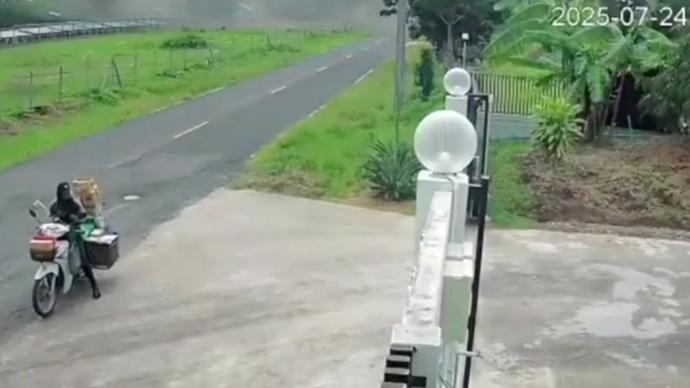 泰柬交火現場,突然竄出一快遞哥,騎車送貨,閃身而過……