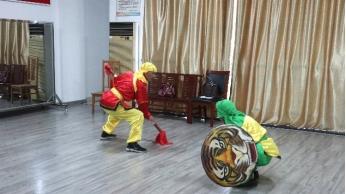 宜興之行則揭開了“男歡女喜”面具下的神祕。在張渚鎮綜合文化服務中心,省級傳承人陳紅梅與汪國琴細緻講解這一擁有600年曆史的獨特假面雙人舞。當師生們戴上原版面具、繫上腳鈴,在“花蝴蝶”“採桑”等充滿生活情趣的動作中,歷史的分量感與細膩的情感表達直抵心靈。官林鎮的“盾牌舞”則展現了武舞雄風,花甲之年的老藝人張正盤、蔣漢中翻滾騰挪,一招一式盡顯剛勁風骨。盾牌舞傳承人張發明在座談中也向團隊講述了“盾牌舞”近40年的發展狀況,以及自己如何利用企業優勢組建盾牌舞隊,讓師生更體會到傳承這份傳統技藝所蘊含的責任與重量。
