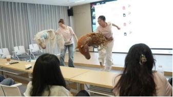 仁和高頭竹馬則在創新中煥發新生。第二代傳承人姚連芬與藝術總監郭勁將道具升級爲全竹編馬頭,並創作主題歌曲《高頭竹馬》。當同學們穿戴竹馬體驗“跑馬陣”時,立刻迸發創意,即興創作的新動作融入傳統步伐,讓竹馬奔跑的動感更加鮮活。曹雨欣同學在體驗後深有感觸:“這種碰撞的火花讓我們體會到,傳統文化的生命力既在堅守的根裏,更綻放在創新的芽上。”