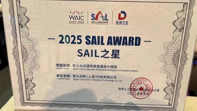 智元機器人獲“SAIL之星獎”,係獲獎者中唯一機器人企業