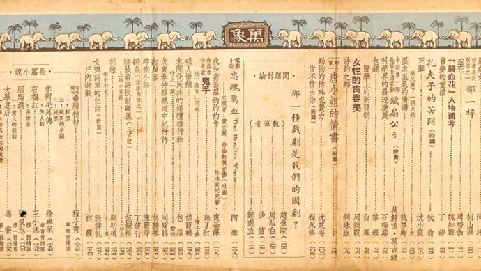 《萬象》內容豐富,不拘一格。從創刊號上我們可以看到,不僅發表了通俗文學大家名家的作品,如周瘦鵑的舊體詩,徐卓呆、王小逸、張恨水、馮蘅的長篇連載,程小青翻譯的外國偵探小說等等——這些本來就是陳蝶衣所拿手的;除此之外,他還發表了胡山源、周楞伽、丁諦、趙景深、周貽白等新文學作家的作品,這是讓人沒想到的。陳蝶衣打破了壁壘分明的界限,還發表了重要的左翼作家阿英(署名魏如晦)的文章《〈碧血花〉人物補考》。《碧血花》是阿英創作的一個南明歷史劇,歌頌愛國主義,讚揚民族氣節,實際上是暗含抵抗日本侵略之意的一個劇本。