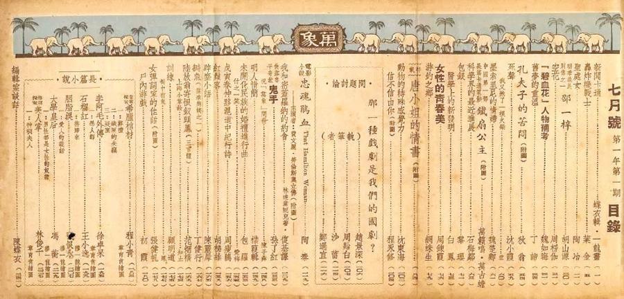 簽名者有21位,都是當時中國文壇的一流作家,有魯迅、郭沫若、茅盾、鄭振鐸、陳望道、林語堂、豐子愷、巴金等,但更引人矚目的是包天笑和周瘦鵑這兩位通俗文學的代表人物。故而,可以把《宣言》看作是新文學跟通俗文學第一次聯手,抵抗外來侵略,主張求同存異。不過,這份聲明是言論上、態度上的,真正的通俗文學與新文學的進一步合作,在我看來就是《萬象》的創刊。
