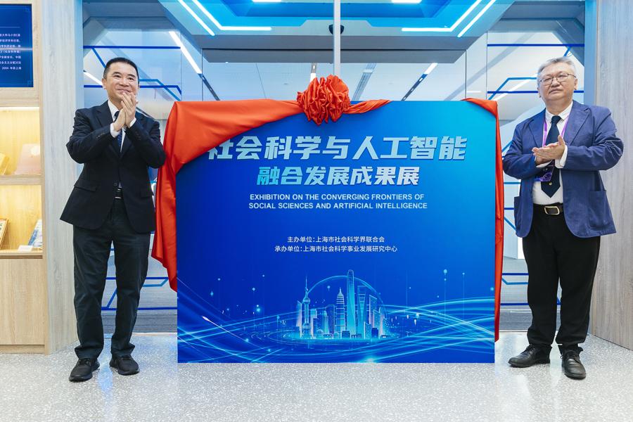 上海市社會科學界聯合會主席徐炯和上海市社會科學界聯合會黨組書記、專職副主席王爲松爲“社會科學與人工智能融合發展成果展”揭幕。展覽宣傳和展示了上海社科界在社會科學與人工智能雙向賦能領域作出的先驅探索和豐碩成果,展區面積約400平方米,展示內容包括探討社會科學與人工智能融合發展的學術著作、研究報告,通過多媒體演示和交互操作體驗的人工智能生成內容、社科大模型、可視化成果等等。展覽得到了上海主要高校和研究機構的大力支持,首批展出成果近200項,未來將持續擴充、更新,作爲常設展覽長期面向公衆開放。
