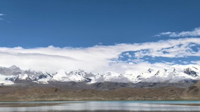 新疆喀什,喀喇崑崙山頂常年的冰川化雪成水,爲山腳下的村落送來生命之水——葉爾羌河。