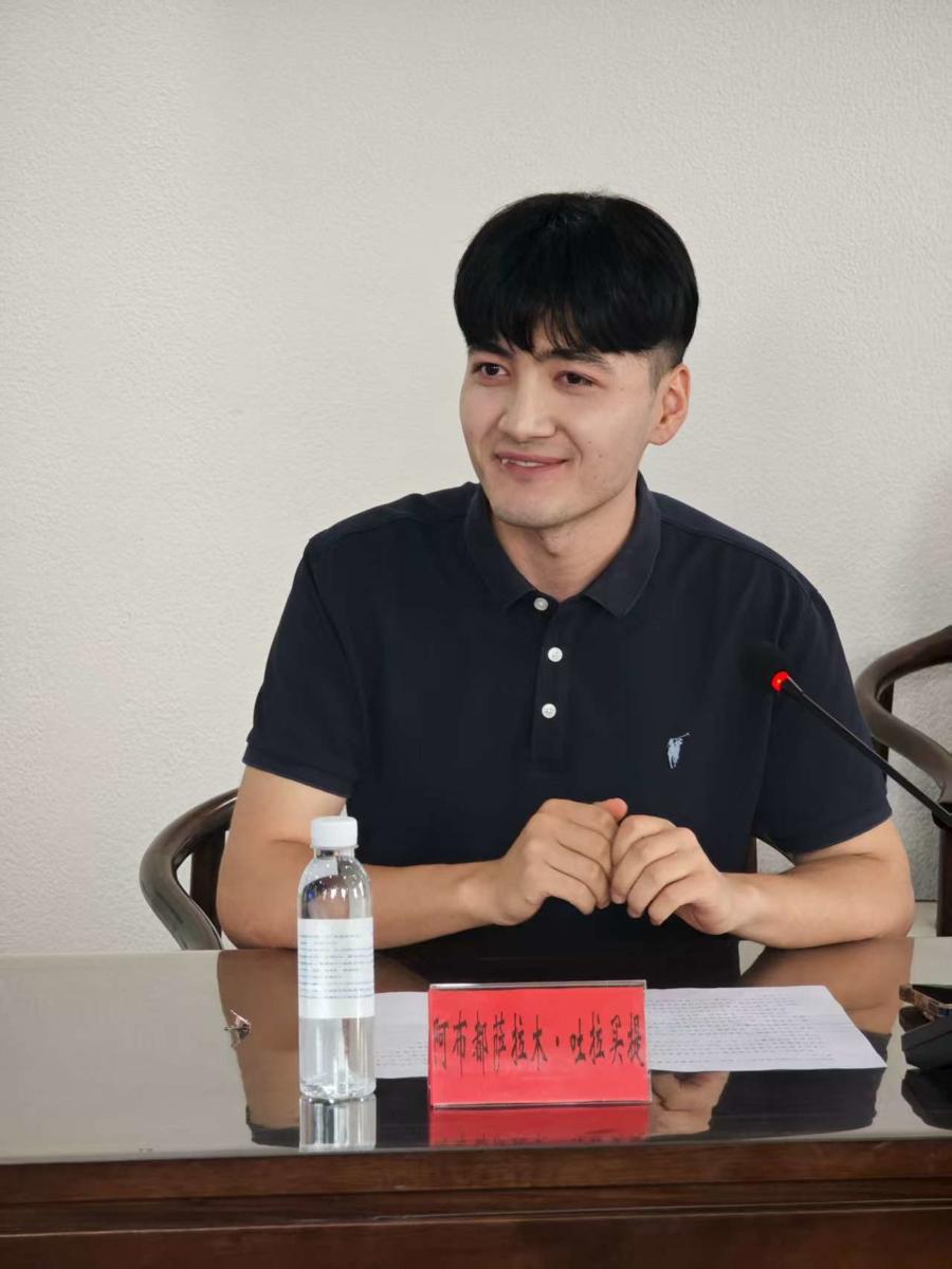 交流會現場,阿布都薩拉木還詼諧地說起了一段“饢言文”,現場不少青年人會心一笑。今年初,新疆喀什發佈的一則普法宣傳視頻中,交警用“饢言文”向大家宣傳喝酒不開車,幽默的演繹方式,吸引千萬人次觀看,並登上抖音熱榜。從“饢言文”說起,阿布都薩拉木也興奮地聊起與室友共同學習的最新RAP,融合維吾爾語、漢語等多種語言。談到興處,他甚至還現場表演了一段。