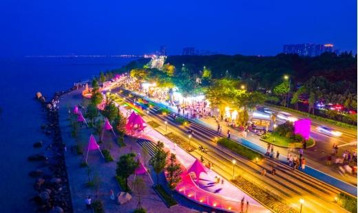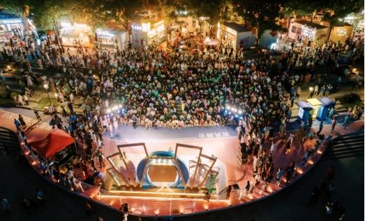 暮色降臨,集市西側的“有風劇場”燈火漸起,“文藝賦美·一起9號”夏日納涼演出準時拉開帷幕。文藝志願者們化身舞臺上的“追光使者”,爲遊客奉上沉浸式文化體驗,活力四射的綜合樂隊、曼妙動人的舞蹈、悠揚婉轉的器樂專場,藝術靈感在此與湖畔清風、璀璨夜色自然交融。“逛太湖有風青年集市不僅能欣賞太湖美景、品嚐長興美食,還能看到專場演出,剛剛小姐姐的搖滾演唱太驚豔了!”來自上海的遊客陳女士興奮地讚歎。這些充滿活力的文藝志願活動,讓集市從單純的消費場景昇華爲文化共享空間,也讓集市成爲長興縣九號公路上的新晉文旅地標。