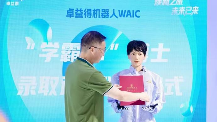 7月27日,在2025世界人工智能大會現場,由上海理工大學李清都教授團隊研發的卓益得“行者二號”優化版機器人“學霸01”,從上海戲劇學院黨委書記謝巍手中接過紅色錄取通知書,被錄取爲上海戲劇學院戲劇與影視(全日制)專業2025級新生(博士,學制肆年),成爲全國首位以“博士”身份入學的具身智能機器人。上海理工大學聯合上海戲劇學院共同設計培養方案,將生成式人工智能融入戲劇藝術創作,將具身智能融入具體專業性能培養,開啓一場跨學科“科藝融合”新範式的全新探索。