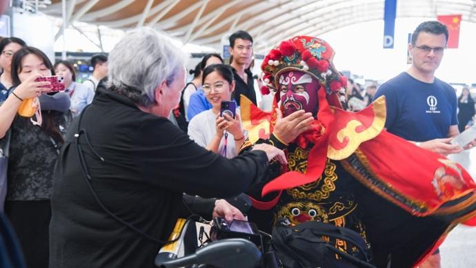 開幕演出在T2航站樓出發公共區域上演,傳統戲曲《川劇變臉》中的非遺技藝,舞蹈《江南水韻》《飛天》演繹出的江南美學與敦煌意象,吸引旅客紛紛駐足欣賞、拍照留念。其他場次也精心策劃了絃樂四重奏《梁祝》《卡農》、古箏獨奏《茉莉花》《漁舟唱晚》等節目,機場航站樓化身成爲音樂廳、大舞臺,傳播紅色文化、海派文化、江南文化的生動窗口。