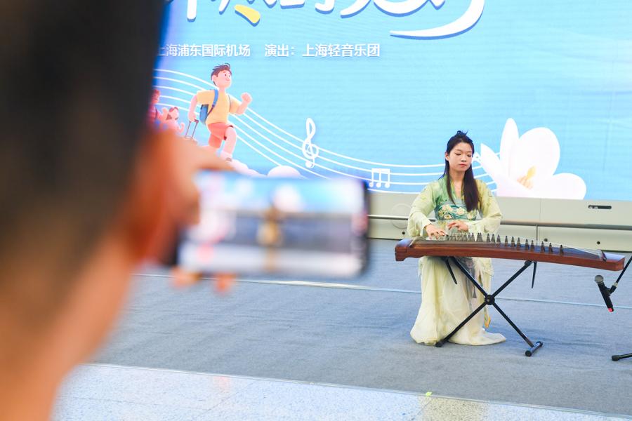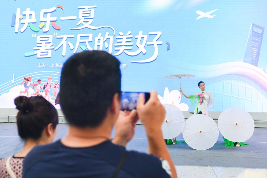 7月28日,浦東機場圍繞“中國樣·China Young”上海機場人文品牌打造,聯合上海輕音樂團啓動“快樂一夏,‘暑’不盡的美好”暑運週週演活動。當天在兩座航站樓和衛星廳的出發、候機區分別舉行4場精彩的文藝演出。